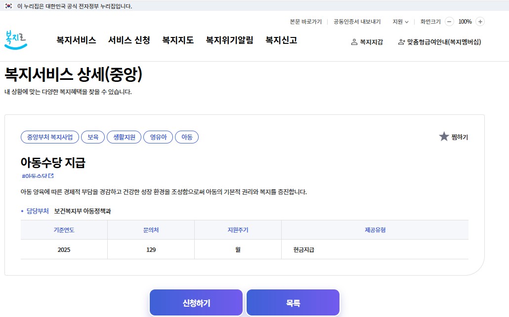 | 신청처 | 정부24(보조금24), 또는 주민센터 방문 |