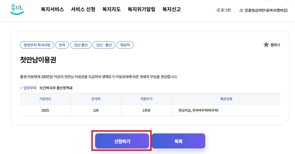 첫만남이용권은 ‘정부24’ 또는 관할 주민센터에서 신청 가능합니다. 출산일로부터 일정 기간 내 신청해야 하며, 전자 바우처 형태로 지급됩니다.